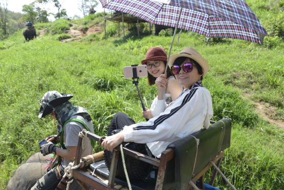來到清邁,騎大象來趟叢林探險是絕對不能缺少的重頭戲,一般兩人共乘一只大象,并有專業(yè)象師隨行。大象上坡和下坡的時候,走的都是淤泥路,所以大家緊緊地抓住扶手,時時擔心自己會掉下來。象隊中,有只叫王寶強的大象很狡猾,有只叫Lady Gaga的大象走得慢悠悠地,還有只大象不愛跟隊伍走,專愛挑別人不走的有難度的路,讓坐在上面的人備感驚險刺激。 在大象訓練營,大家觀看大象表演。在訓象師的指揮下,大象除了會跳舞、踢足球、騎車、站立、鞠躬、戴摘帽子,還會自由隨性揮表演獨特的繪畫天份,精彩的表演讓在場的觀眾掌聲不斷、笑聲不斷。而后大家前往乘坐竹筏,一路上觀賞寧靜的山谷河川及周圍森林美景,河水不深,時而濺起水花,撐來漂去,好不悠閑。