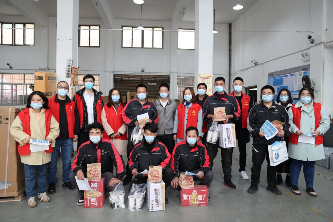 慰問組先后來到順豐快遞網(wǎng)點(diǎn)、公司保安室、高速路口,了解一線防疫人員的工作狀況,向一直堅(jiān)守工作崗位的他們表示衷心感謝,并送上口罩、蛋糕、漢堡、雞腿、飲料等慰問品。