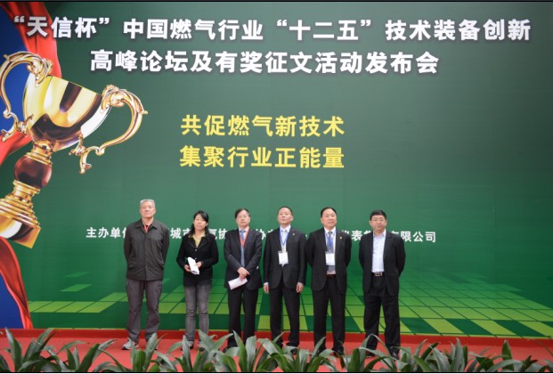 本網訊:由中國城市燃氣協會主辦、我公司協辦的“天信杯”中國燃氣行業“十二五”技術裝備創新高峰論壇和有獎征文活動發布會,于2014年4月15日在2014年中國國際燃氣與熱力技術設備展覽會現場(國家會議中心)正式啟動。出席發布會的有中國城市燃氣協會秘書長遲國敬、副秘書長熊偉、住房和城鄉建設部燃氣標準化專業委員會主任陳云玉、中燃協特聘專家徐姜及我公司董事長陳開云、總裁范叔沙。